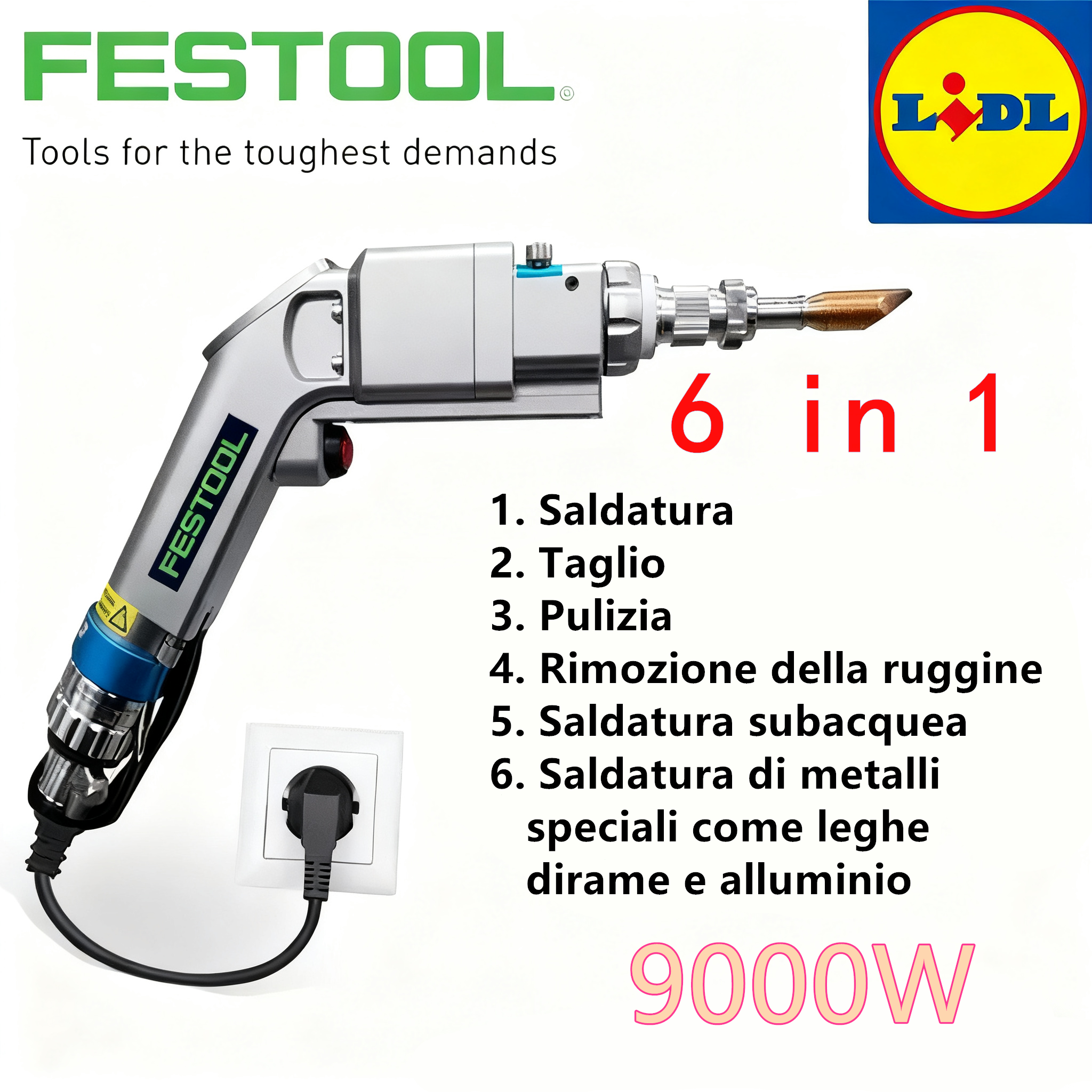 [Inaugurazione nuovo negozio LIDL + celebrazione 100 anni FESTOOL] Saldatrice laser portatile Festool (6 in 1) ultimo modello 2025, saldatura/taglio/rimozione ruggine/pulizia 9000 W!