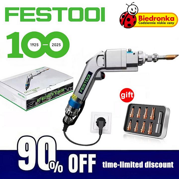 Nel 2025, il primo punto vendita Biedronka sarà gestito da un punto vendita FESTOOL per celebrare il centenario dell'azienda! Offriamo un doppio sconto per festeggiare l'apertura del nuovo punto vendita e l'anniversario!